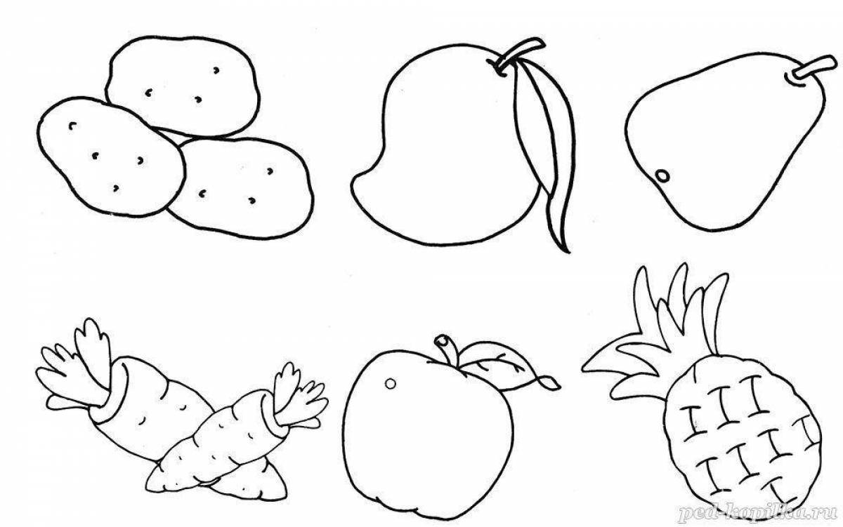![Раскраски овощей и фруктов для детей 4-5 лет]()