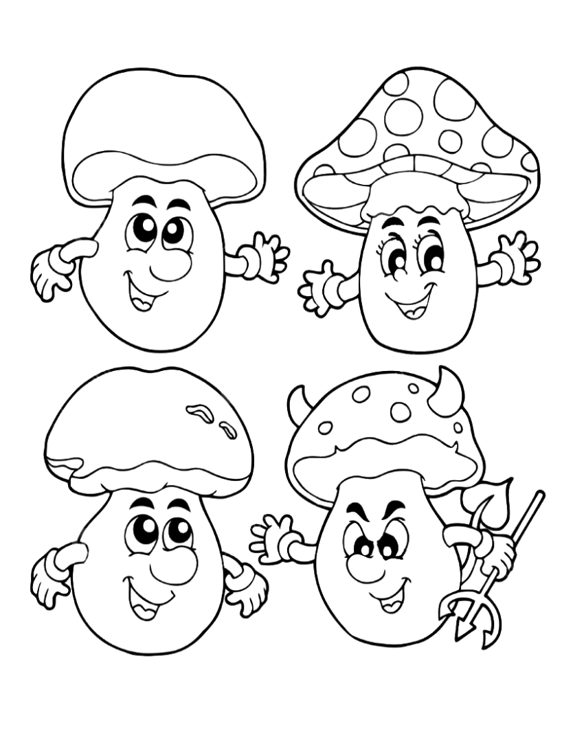 Гриб с лицом раскраска
