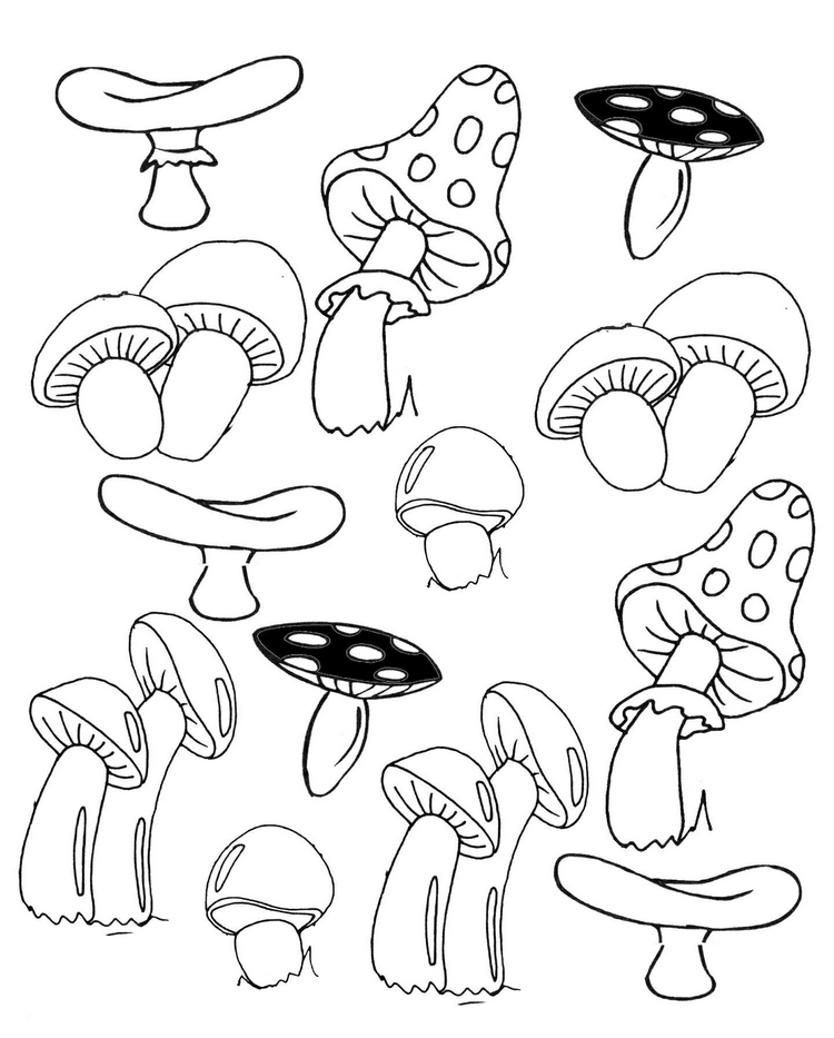 Раскраска маленьких грибов