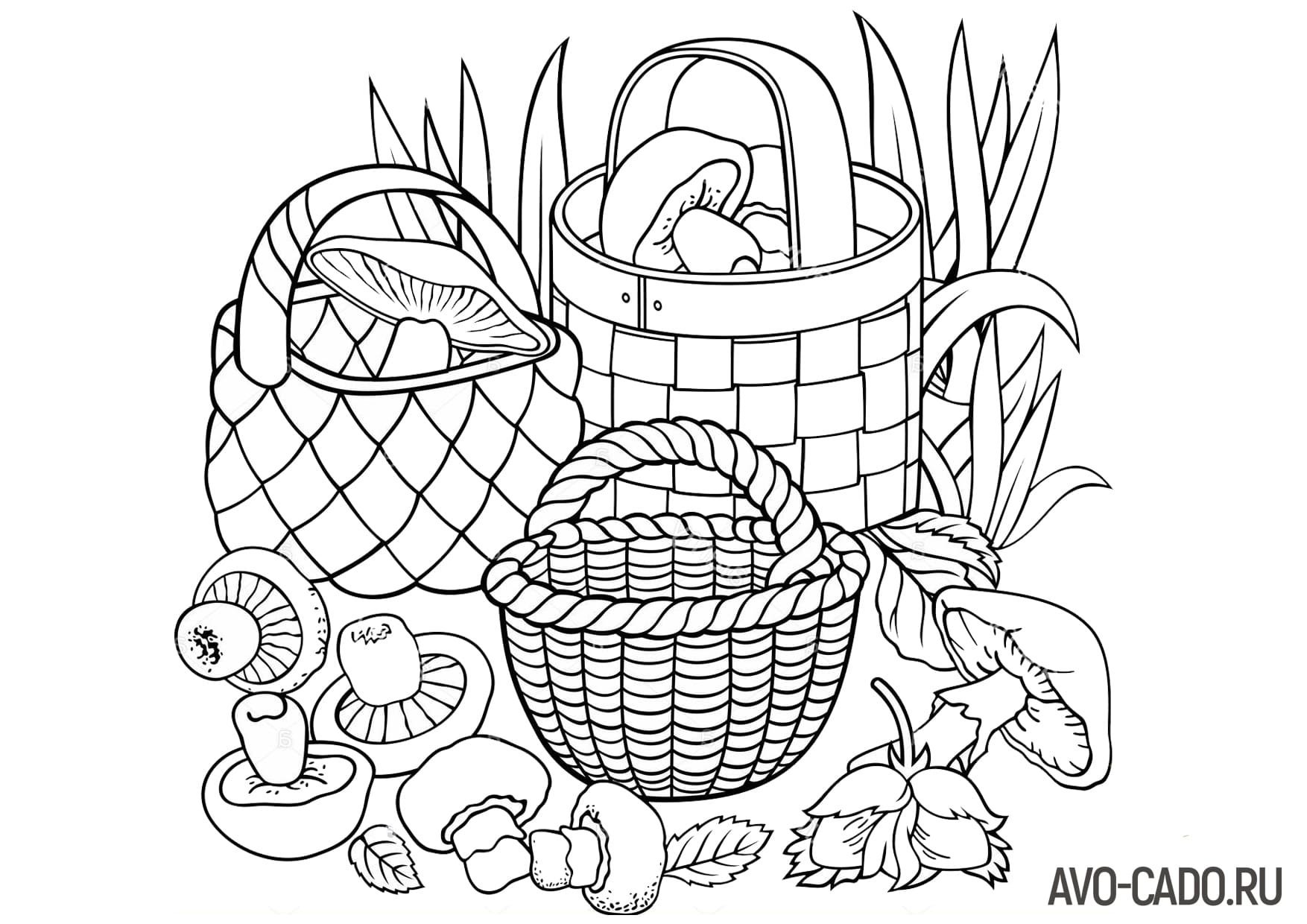 Лукошко с грибами раскраска
