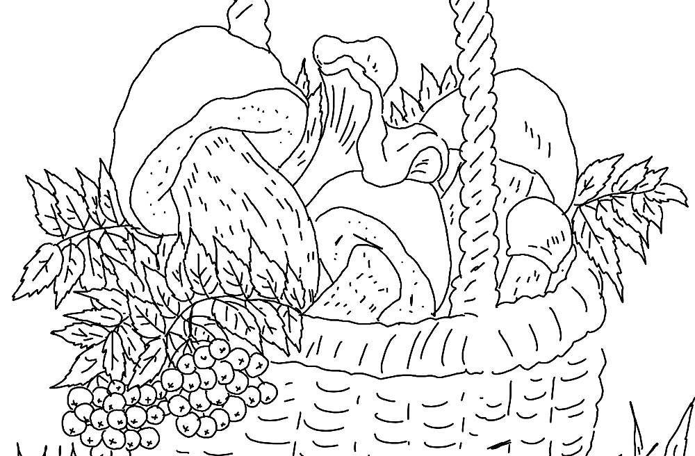 Корзина с грибами раскраска для детей