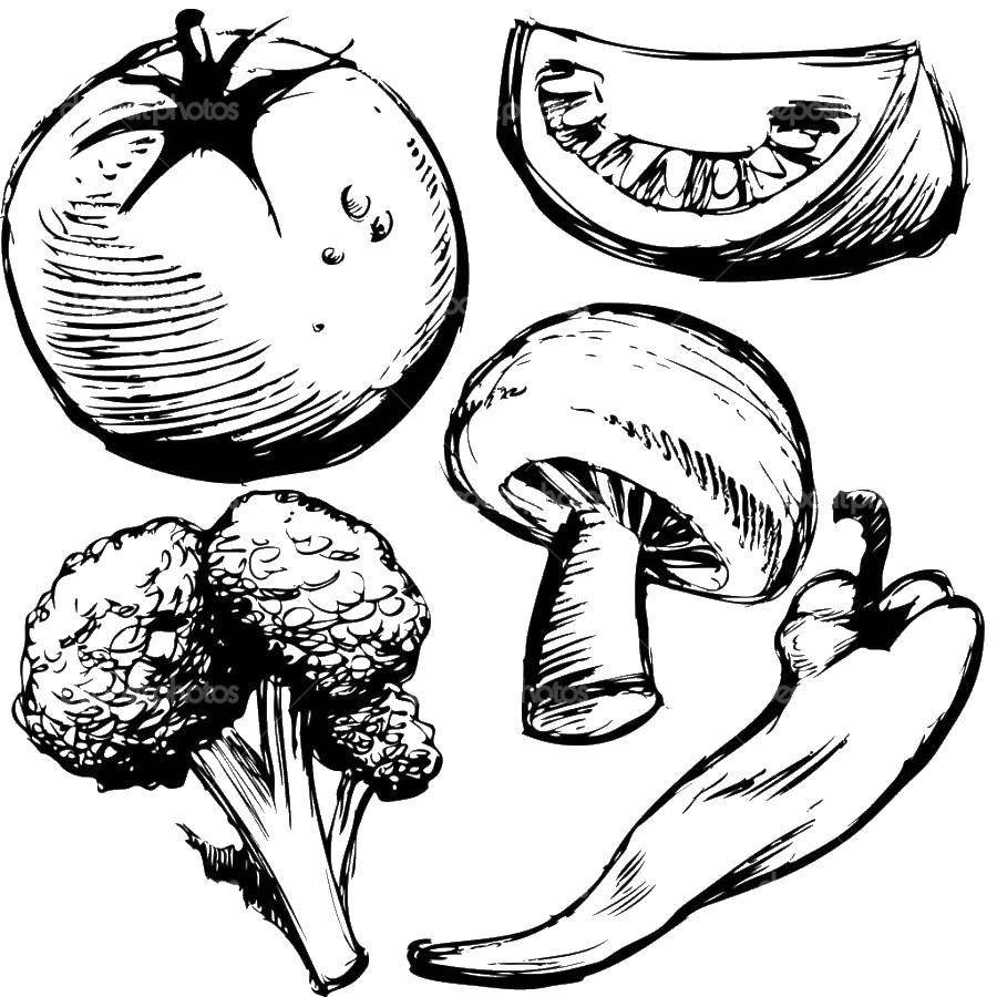 Раскраски фрукты, овощи и грибы