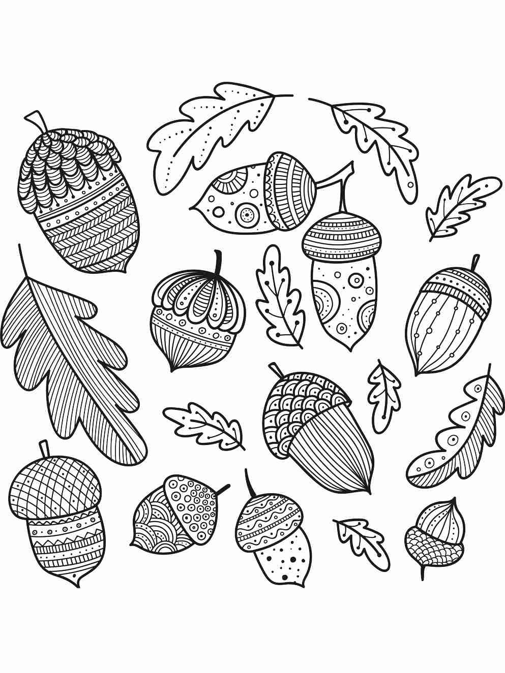 Орехи и желуди раскраска