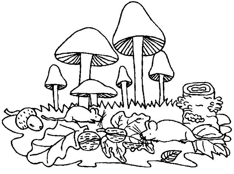 Грибы и орехи раскраска