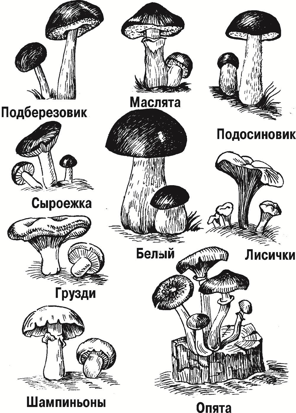 ![Черно белые съедобных гриба]()