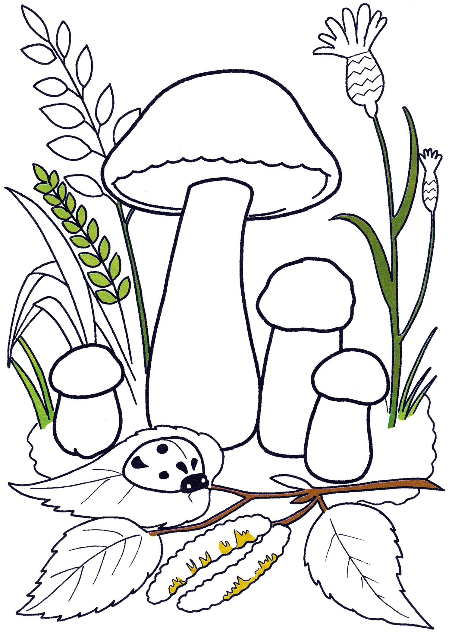 Раскраска грибы в лесу