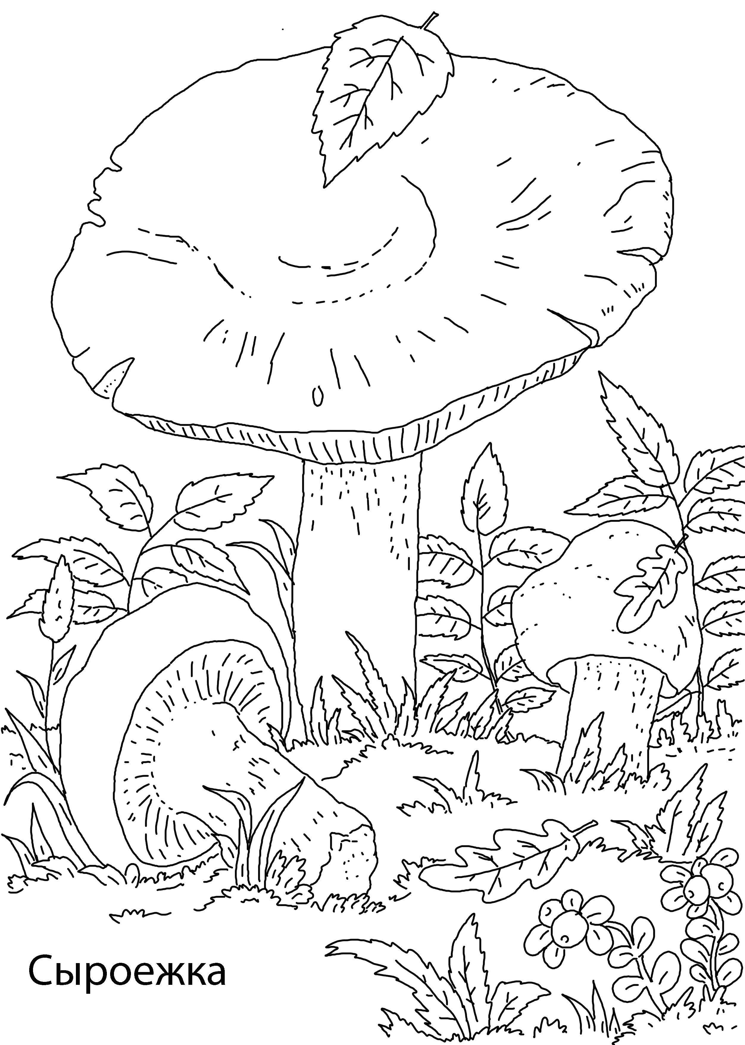 Гриб сыроежка раскраска для детей