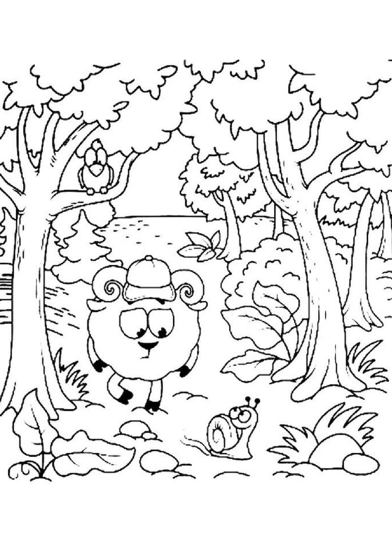 ![Лес раскраска для детей]()
