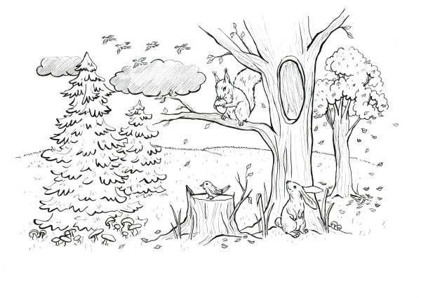![Раскраска леса]()