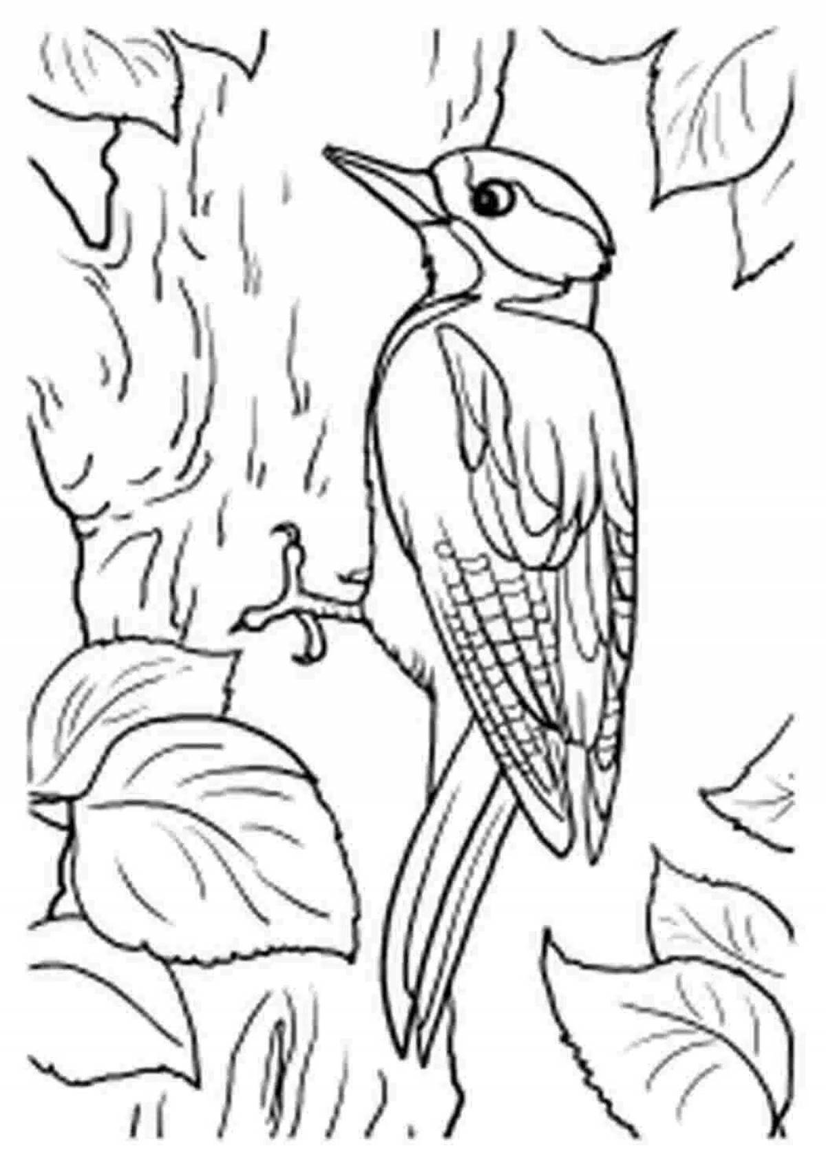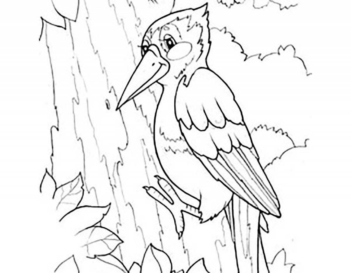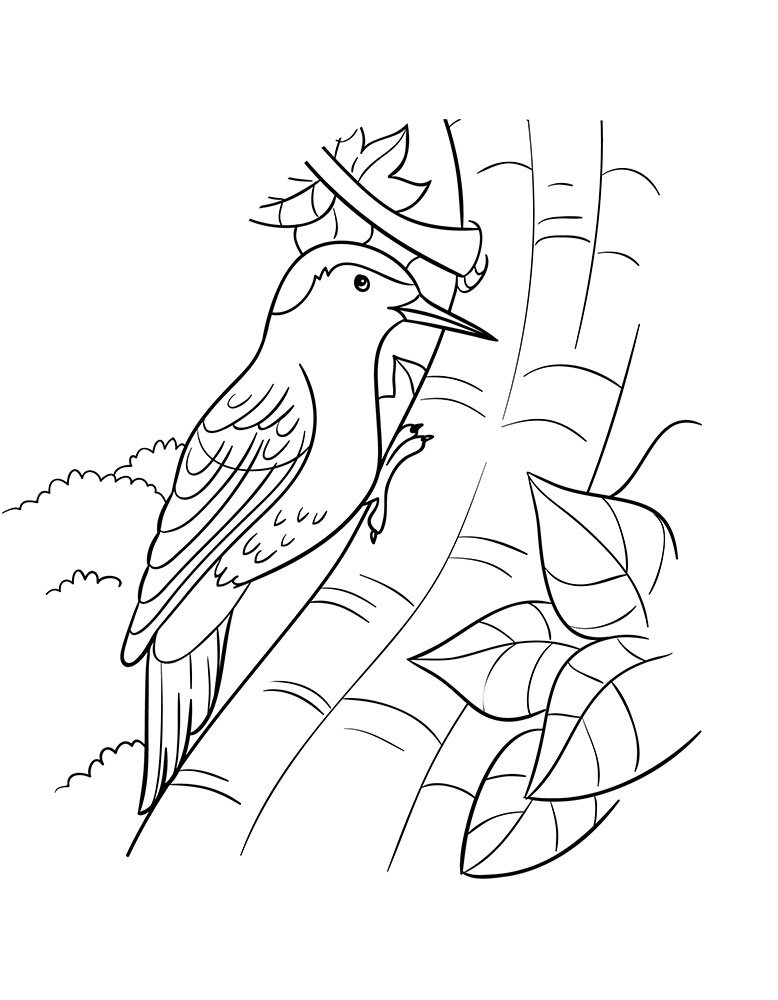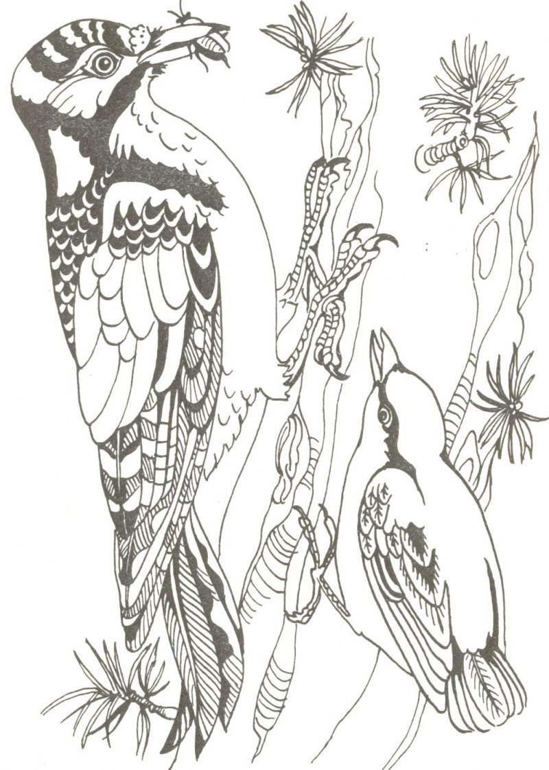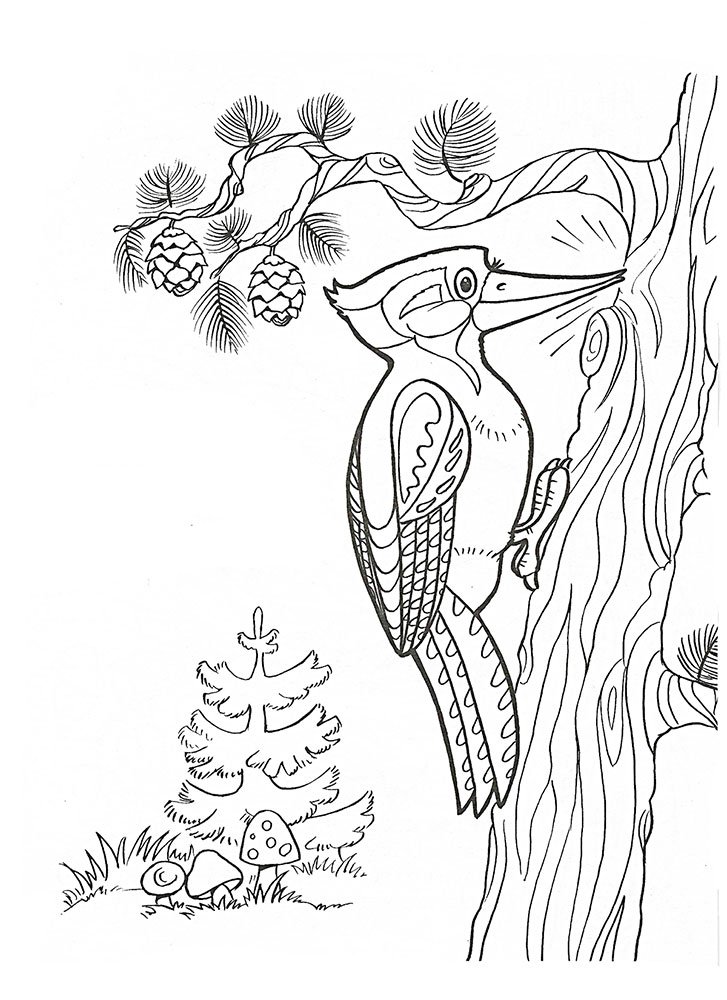 Раскраски птицы леса дятел