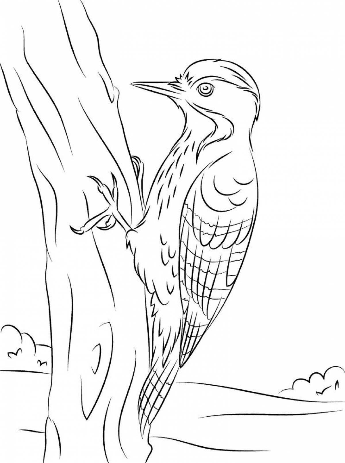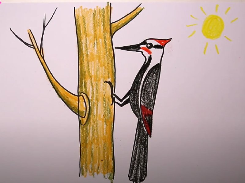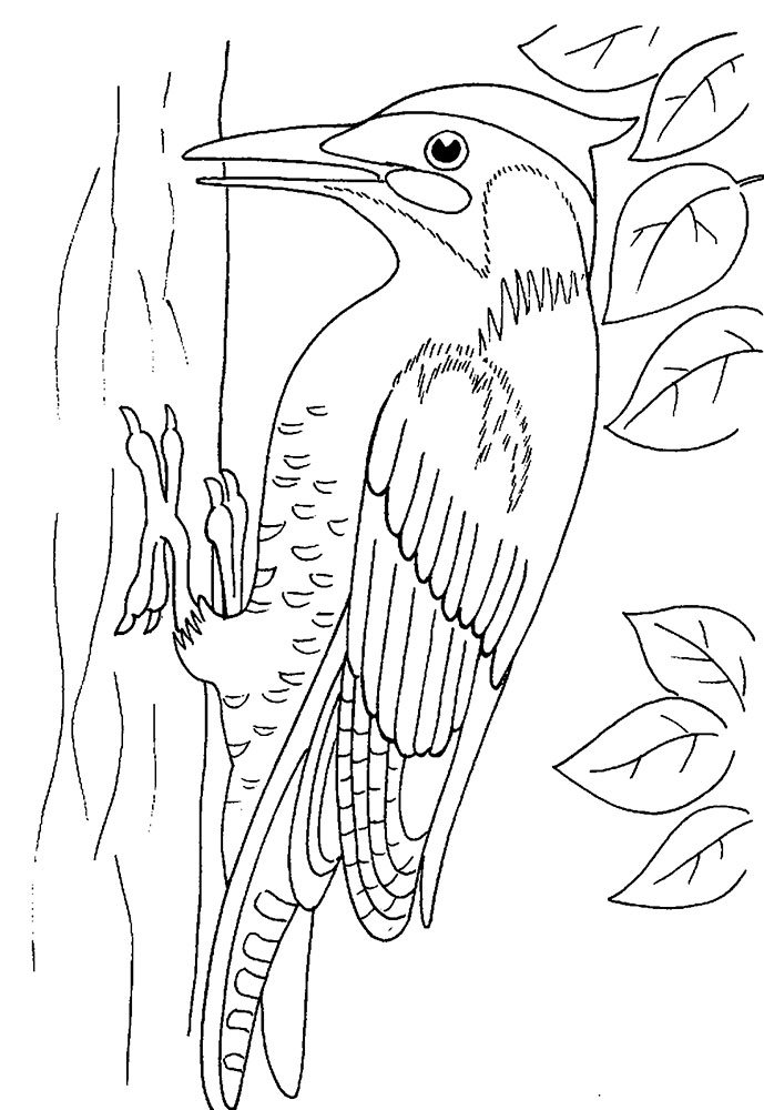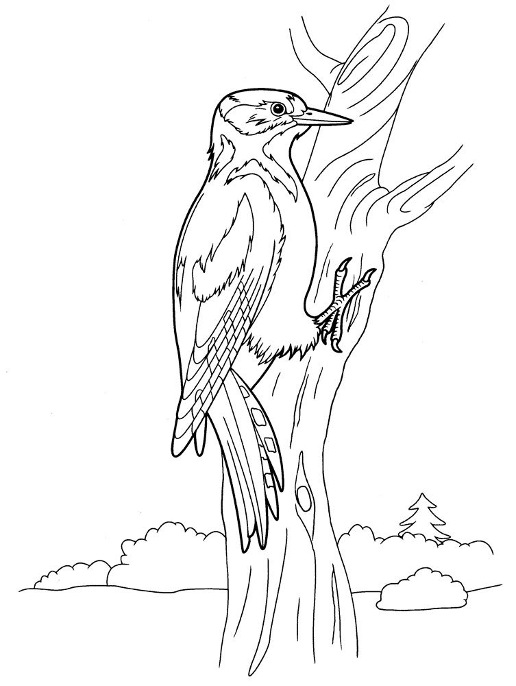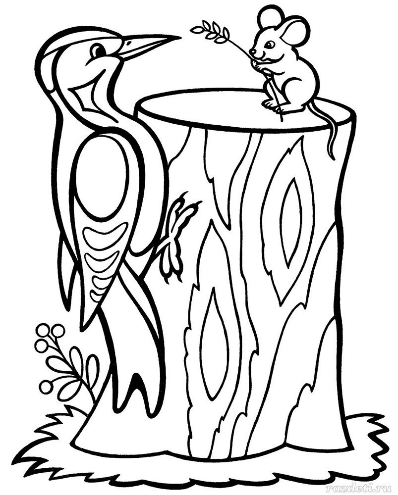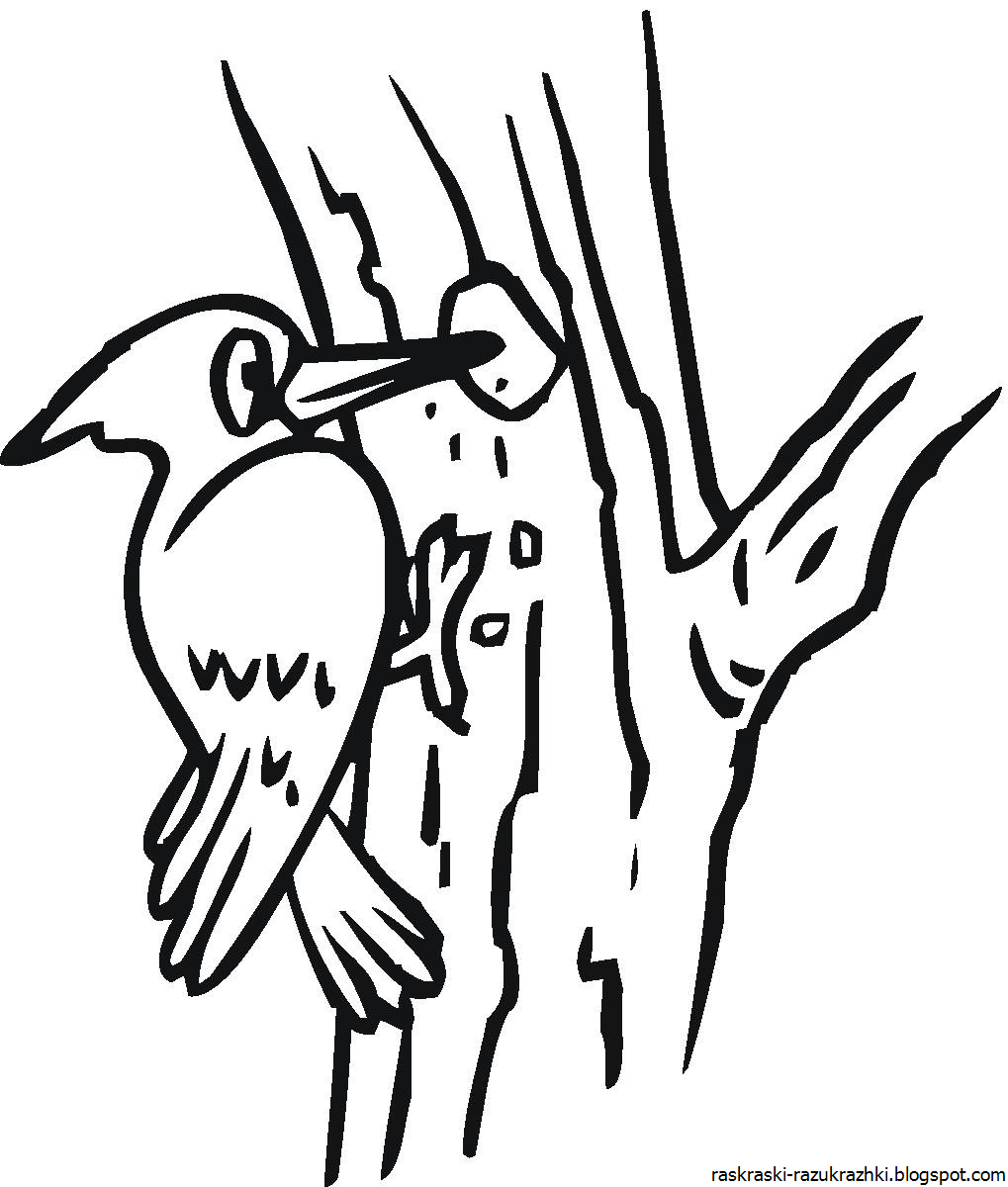 Дятел рисунок для детей раскраска