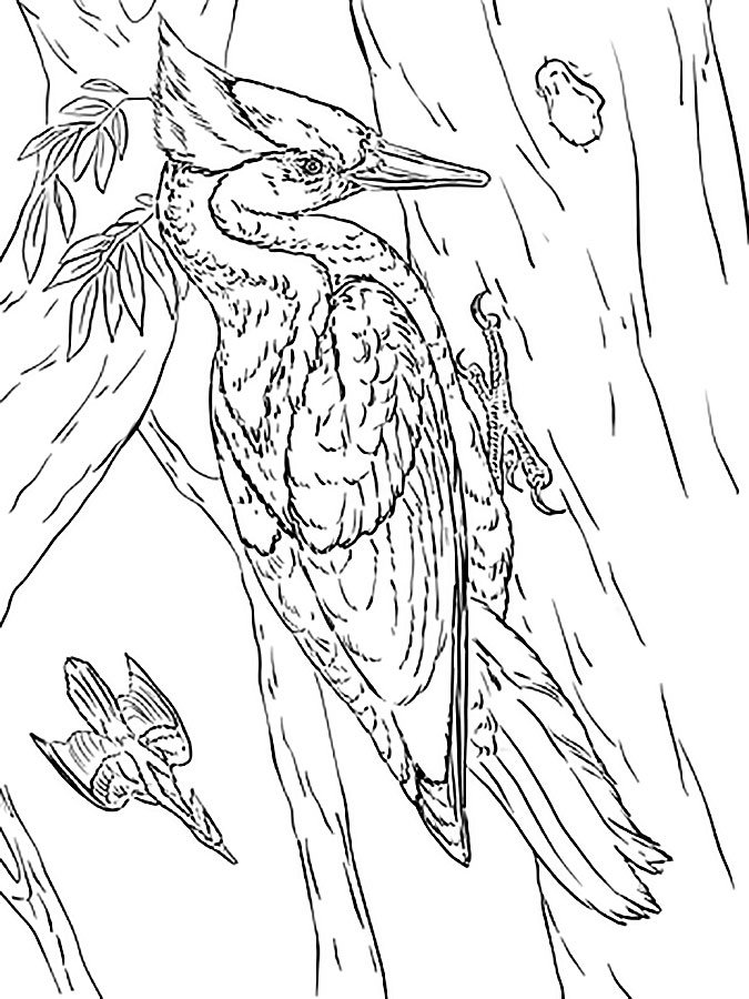 Белоспинный дятел раскраска