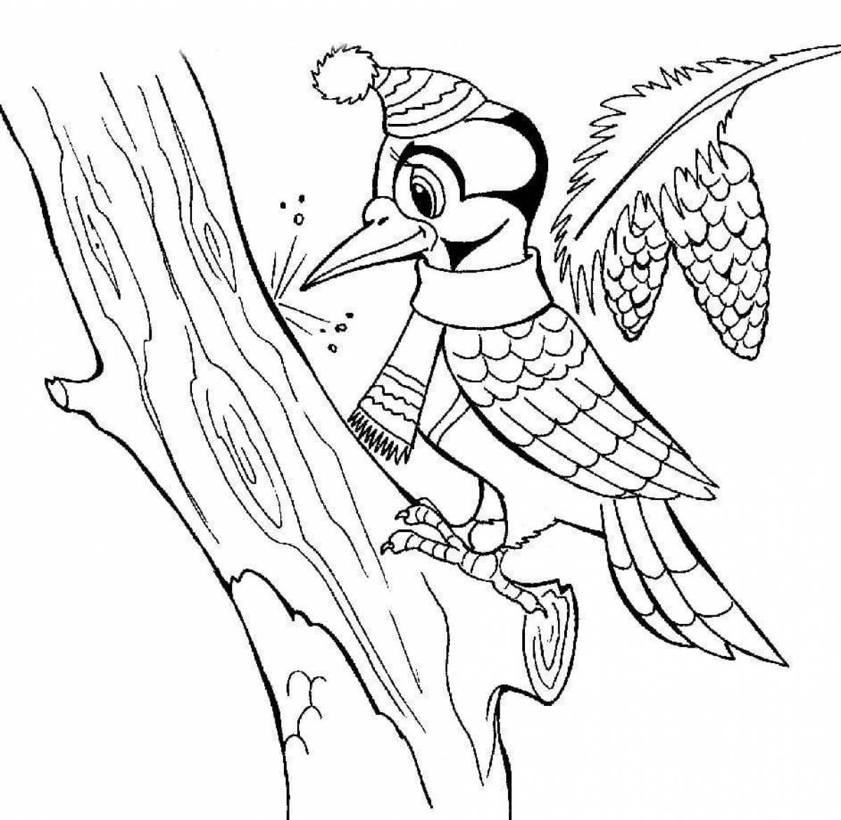 Разукрашка зимующие птицы дятел