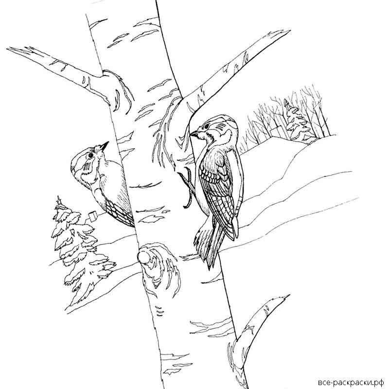 ![Разукрашка зимующие птицы дятел]()