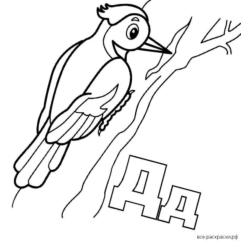 ![Дятел рисунок для детей раскраска]()
