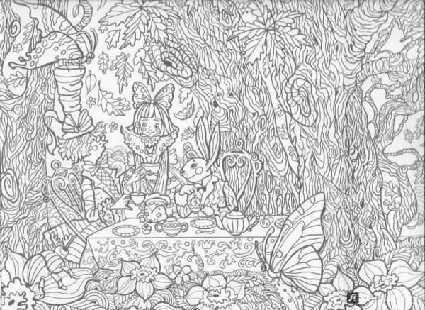 ![Раскраска заколдованный лес Джоанна Басфорд]()