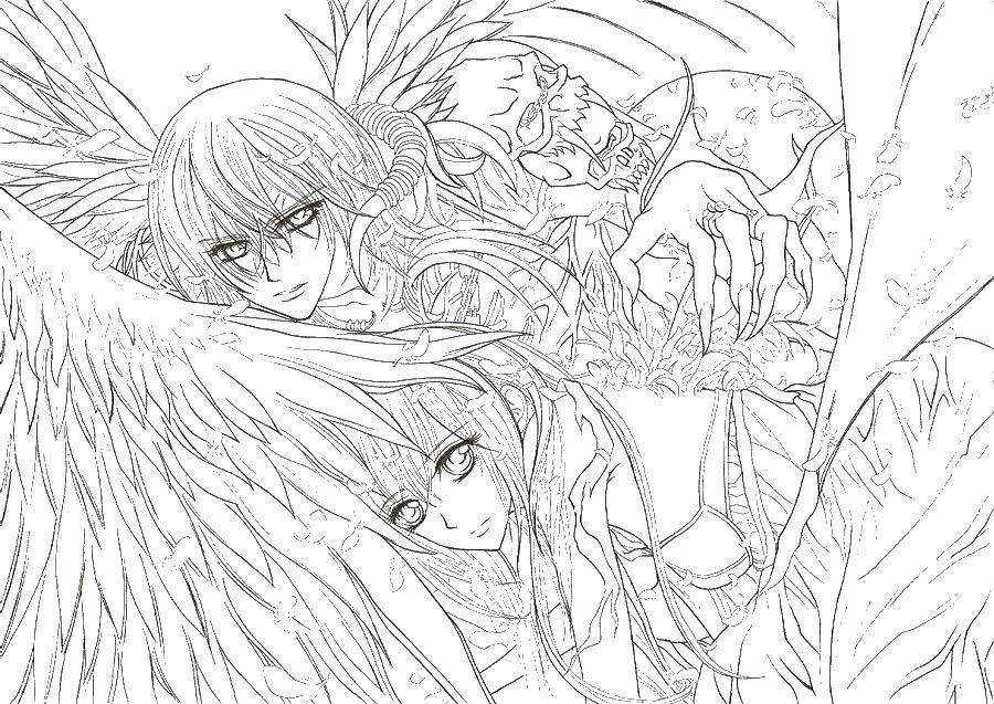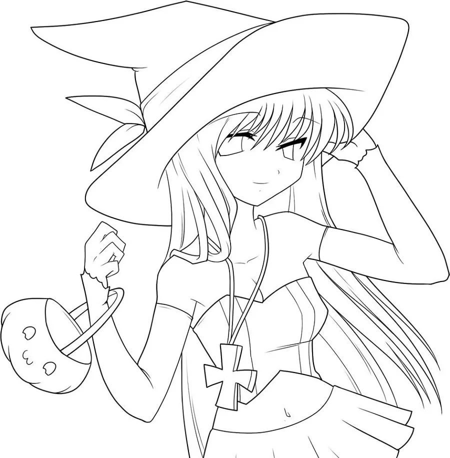 ![Раскраска аниме Хэллоуин ведьмочки]()
