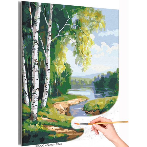 ![Русская живопись картина по номерам "Лось у водопоя" 30x40 см]()