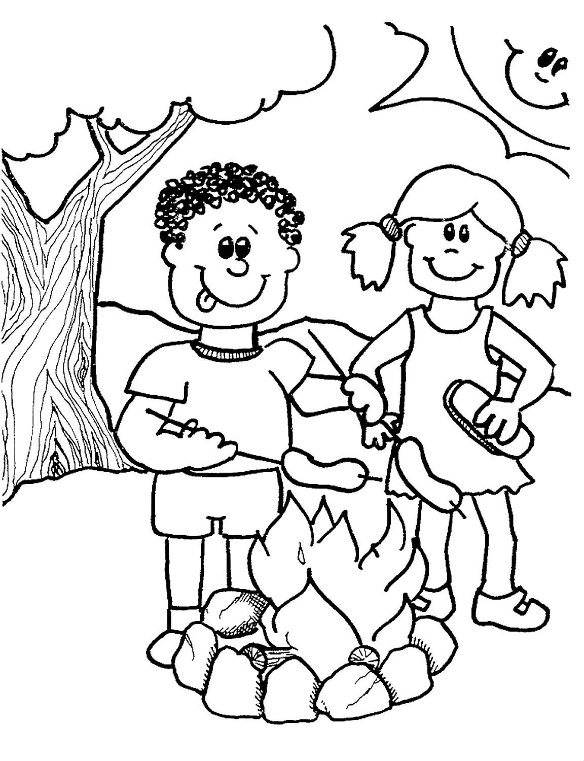 Дети в лесу раскраска для детей