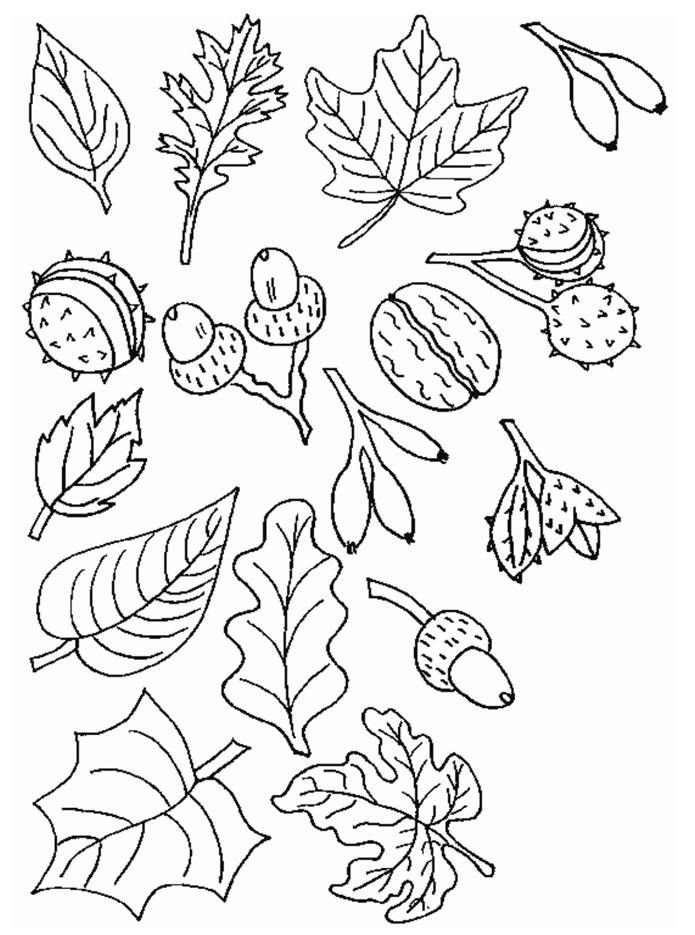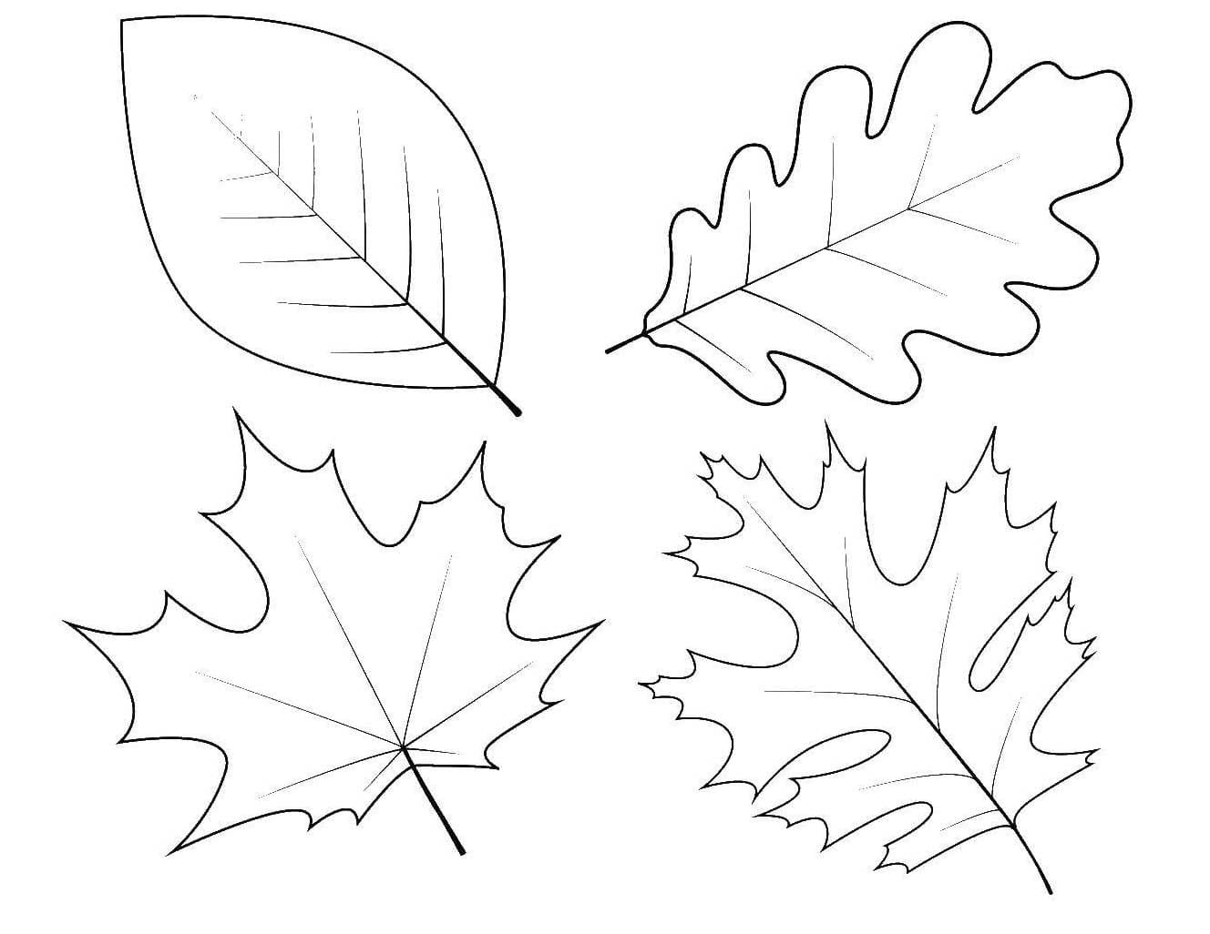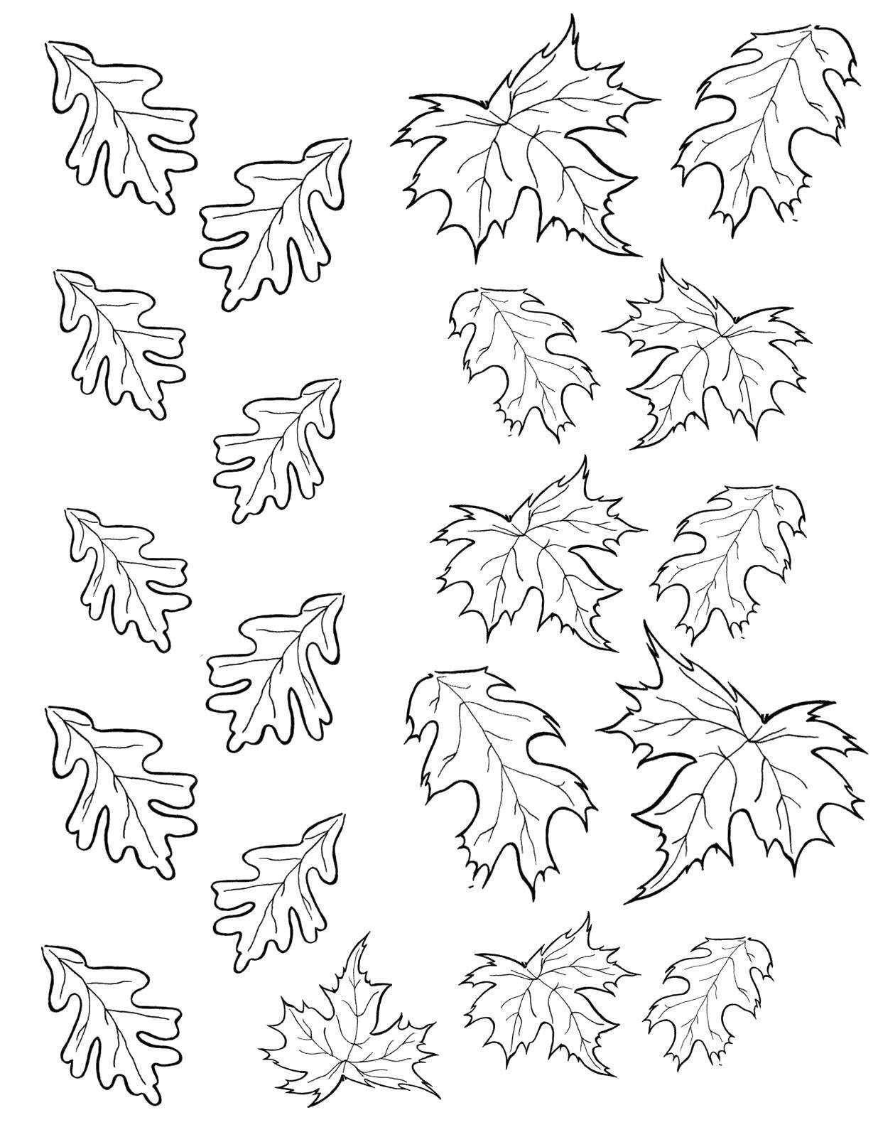 Контуры осенних листьев для детей