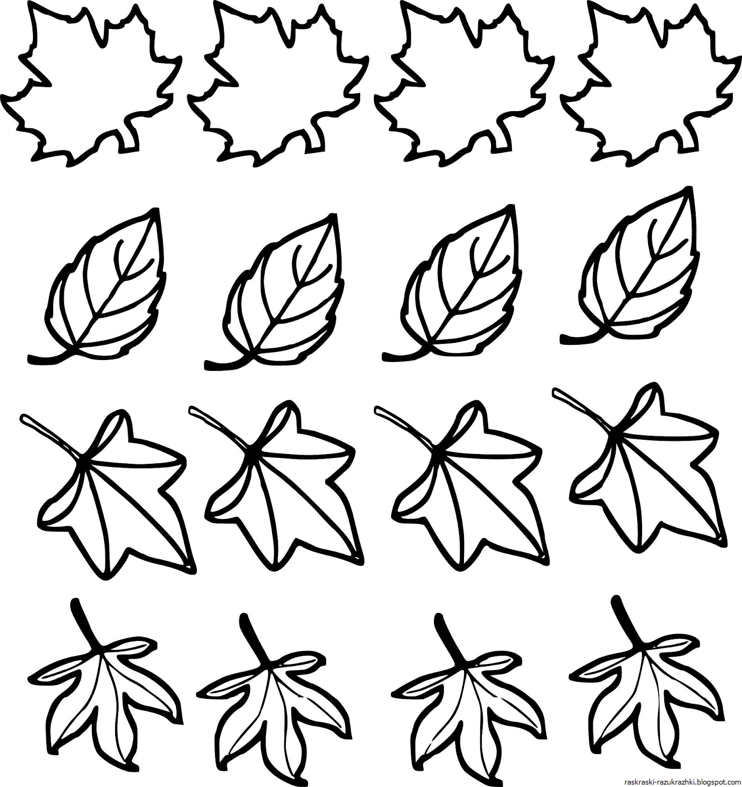 ![Листья раскраска для детей]()