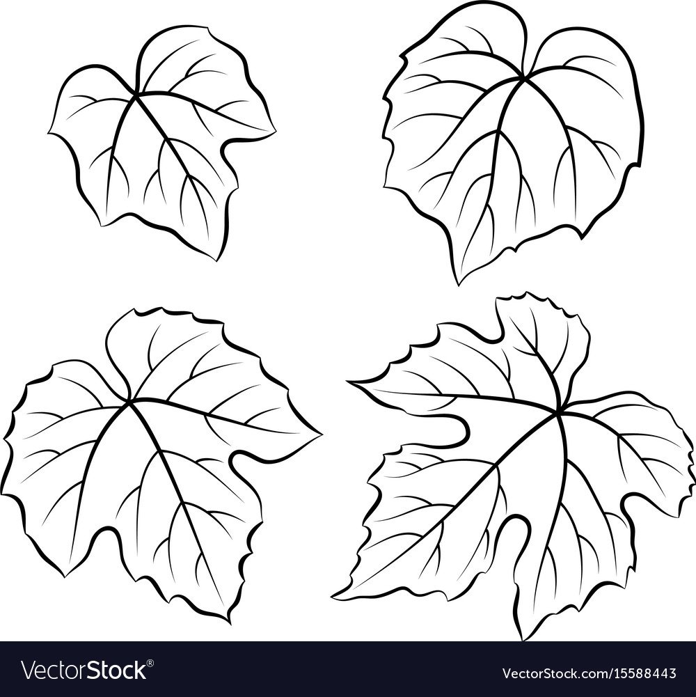 ![Виноградный лист контур]()