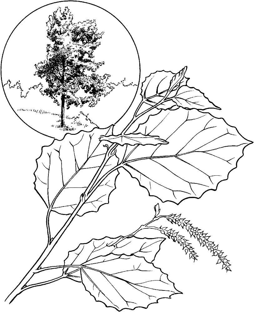 ![Лист тополя раскраска для детей]()