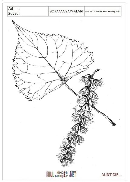 ![Лист тополя для раскрашивания]()