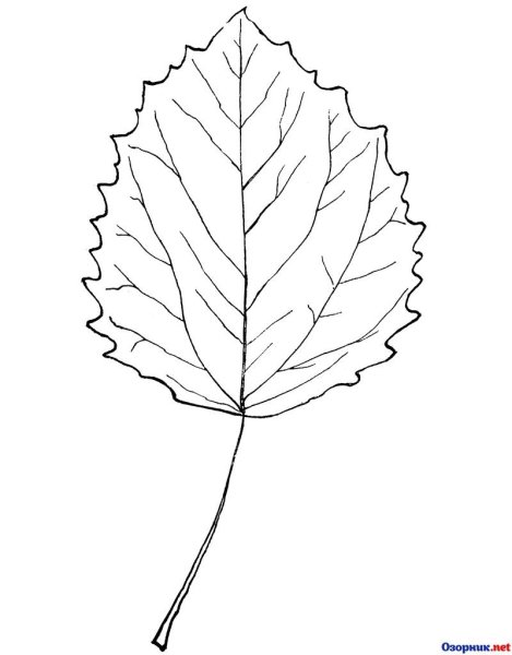 ![Лист осины раскраска для детей]()