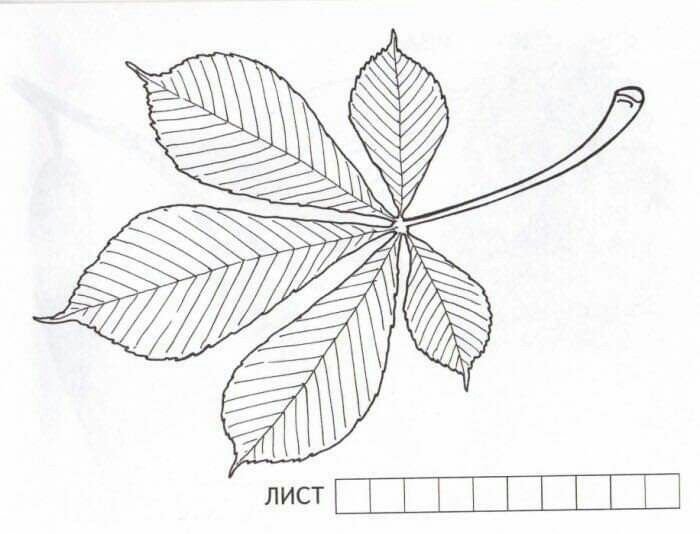 ![Лист каштана раскраска]()