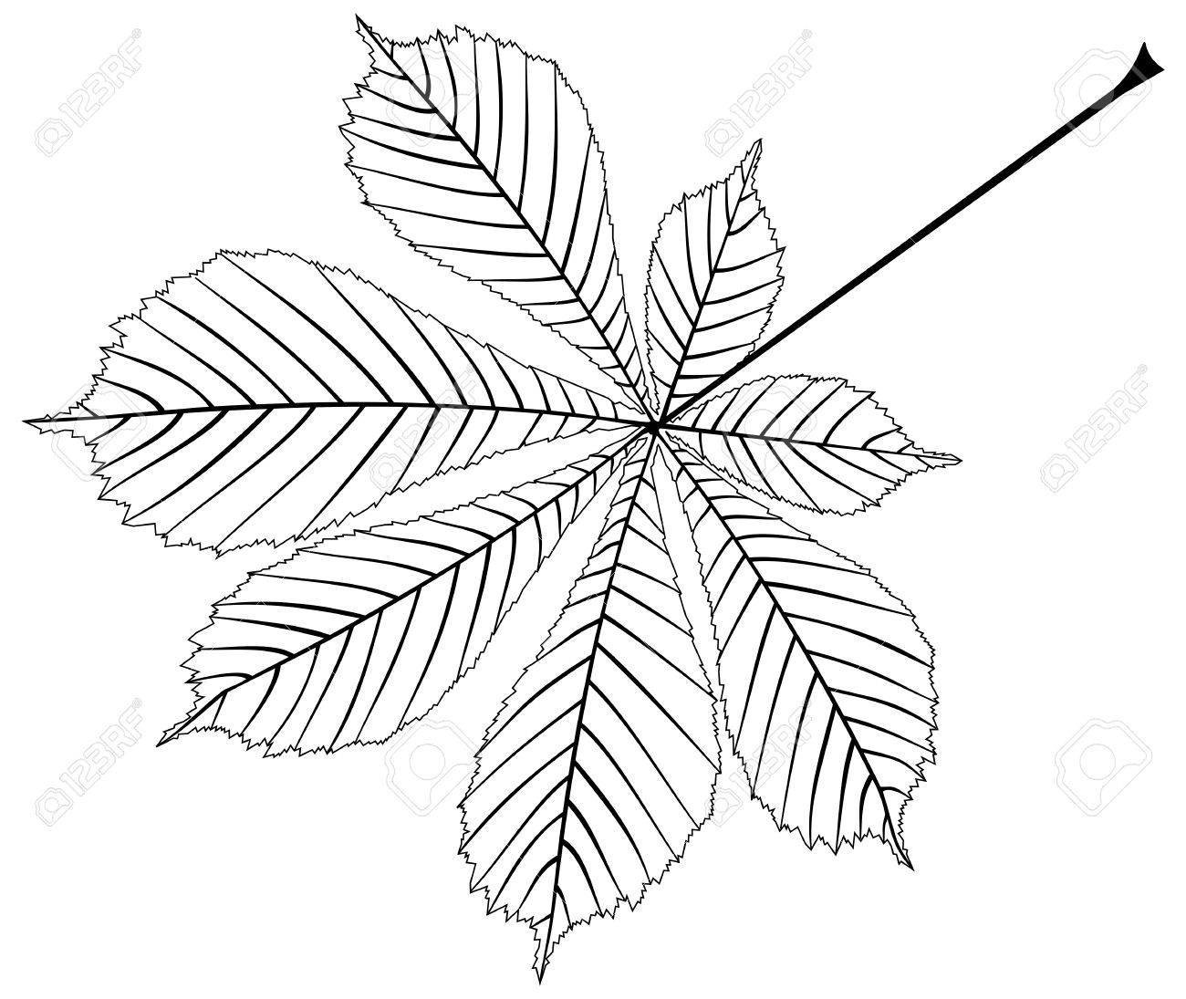 ![Лист каштана контур]()
