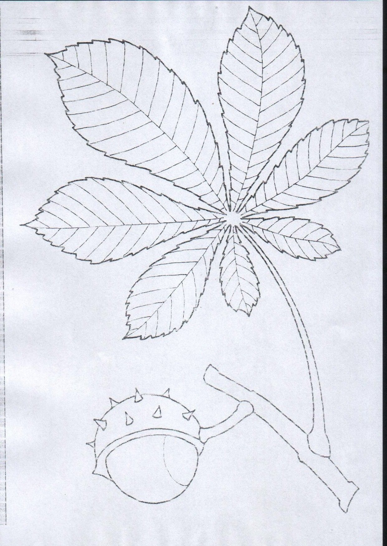 ![Лист каштана эскиз]()
