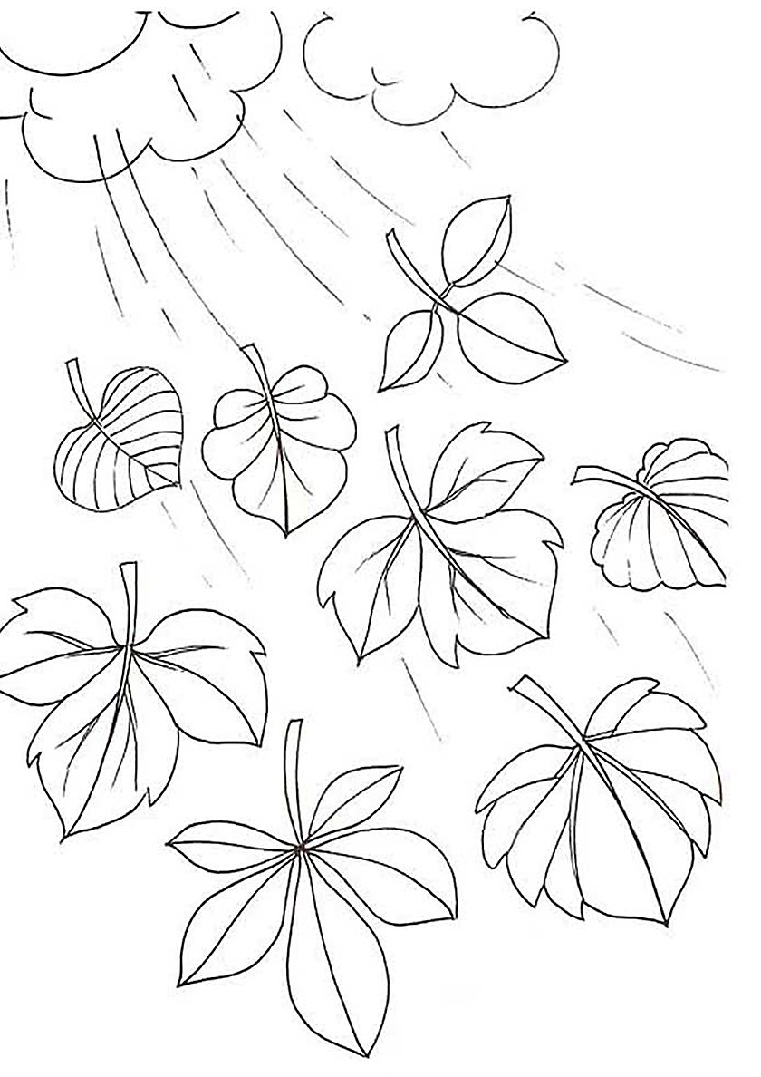 ![Раскраска ветер с листьями]()