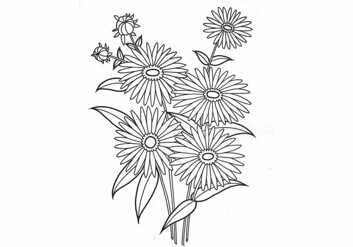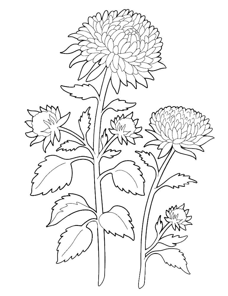 ![Астра георгина Гладиолус Хризантема бархатцы раскрасить]()