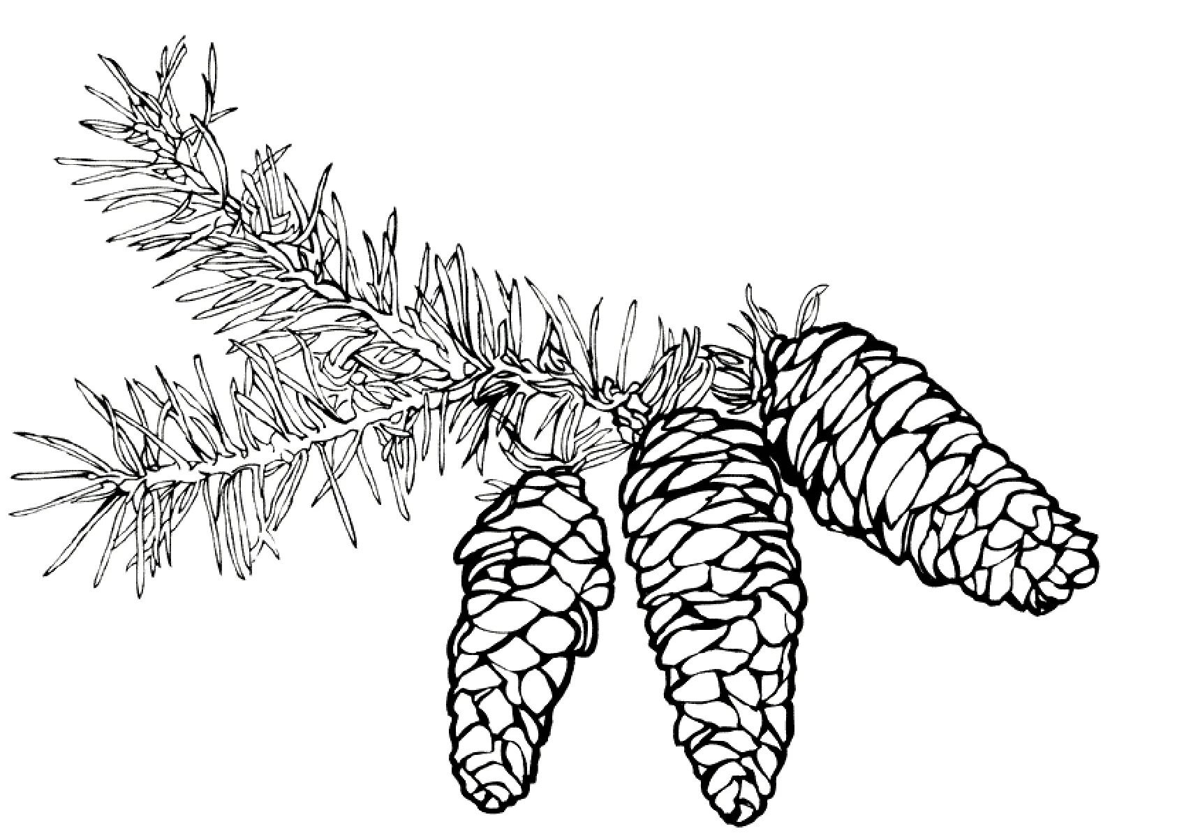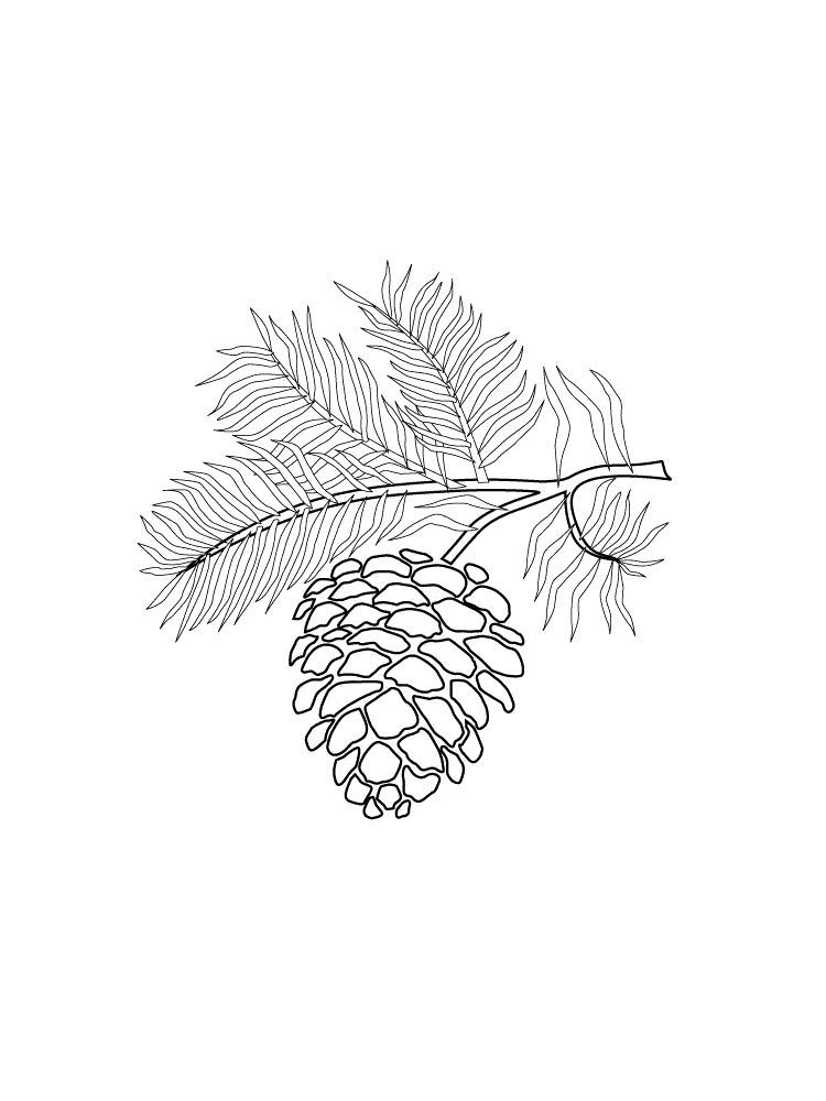![Раскраска ветка елки с шишками]()