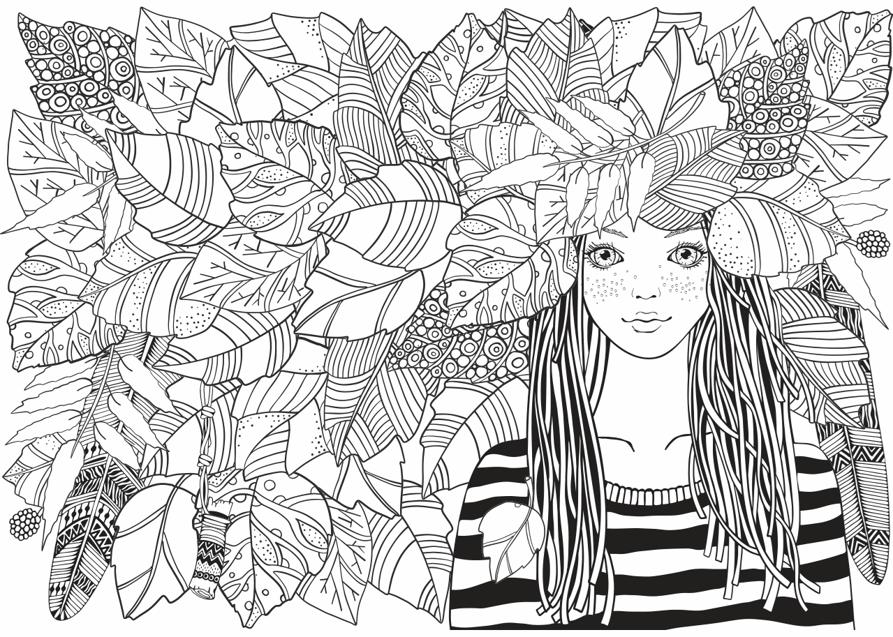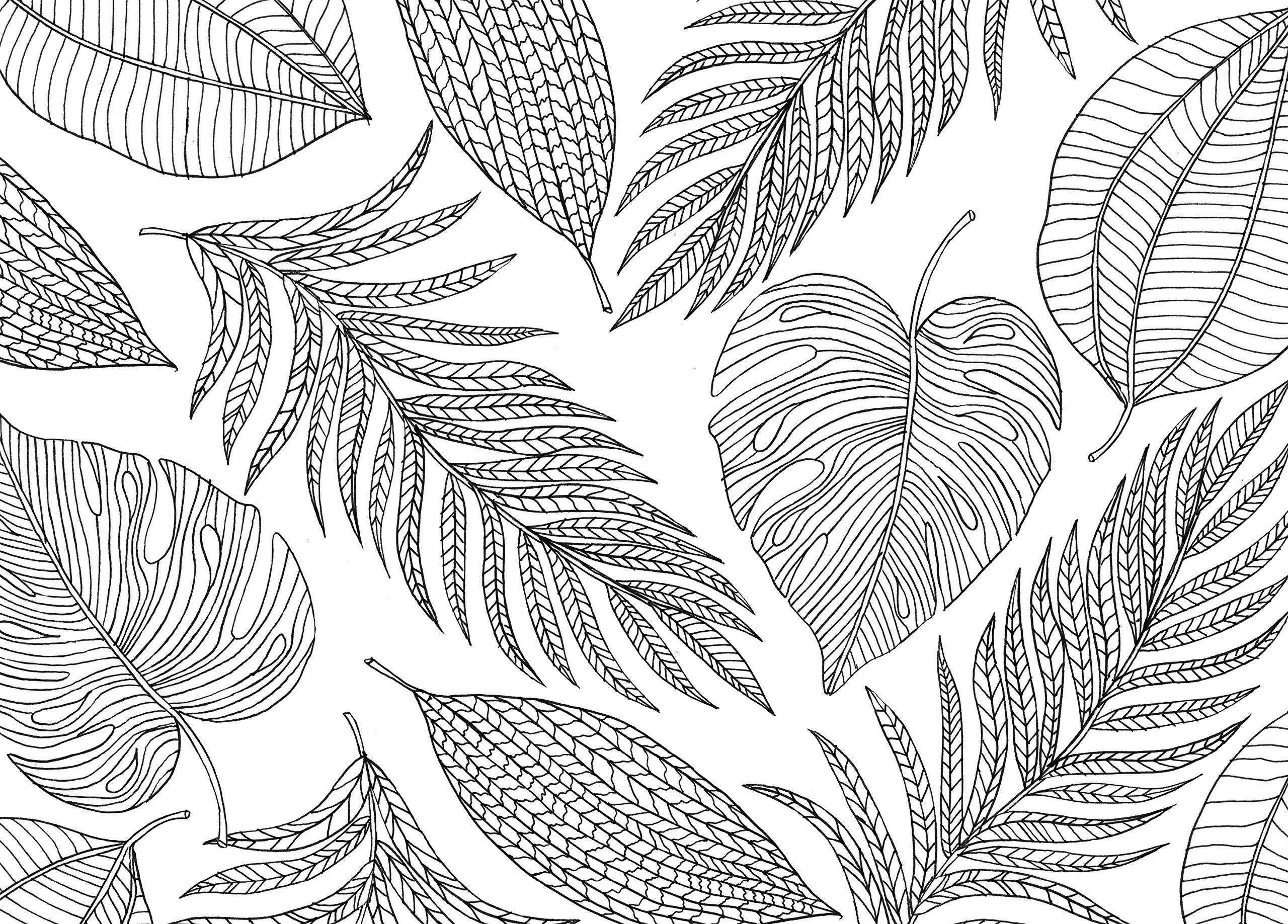 ![Раскраска для взрослых листья]()
