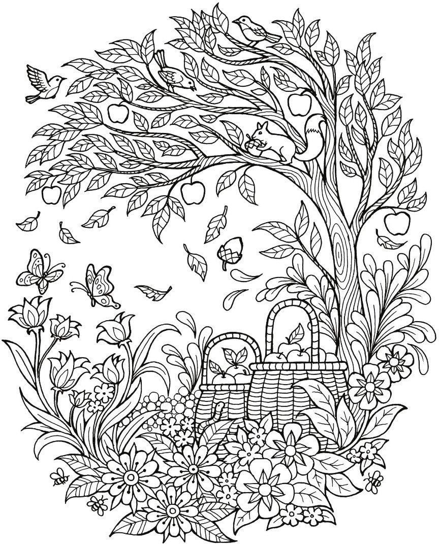 Раскраски осень сложные