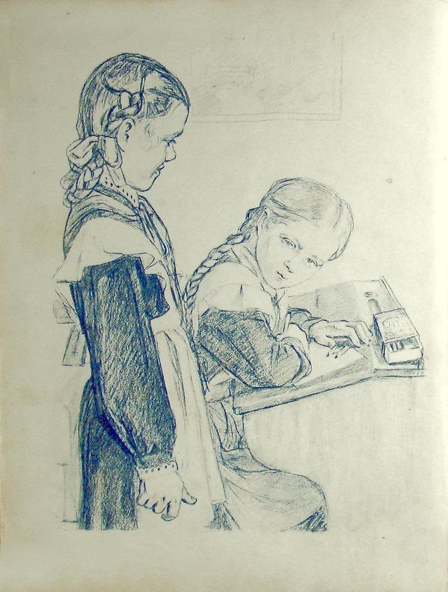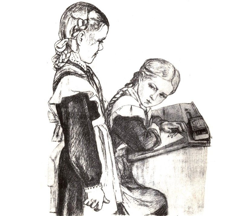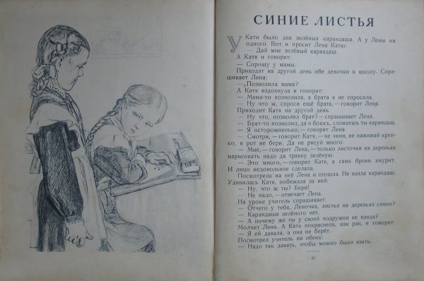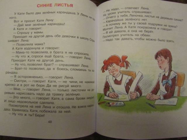 ![Иллюстрация к рассказу синие листья Осеевой]()