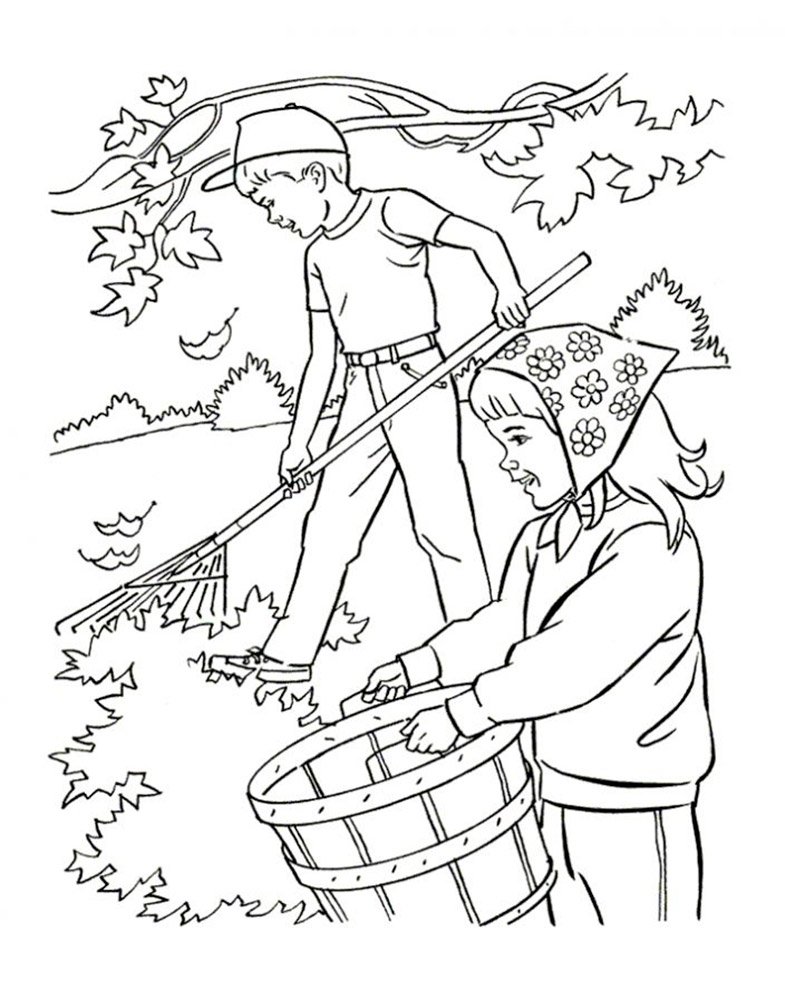 Труд людей осенью раскраска