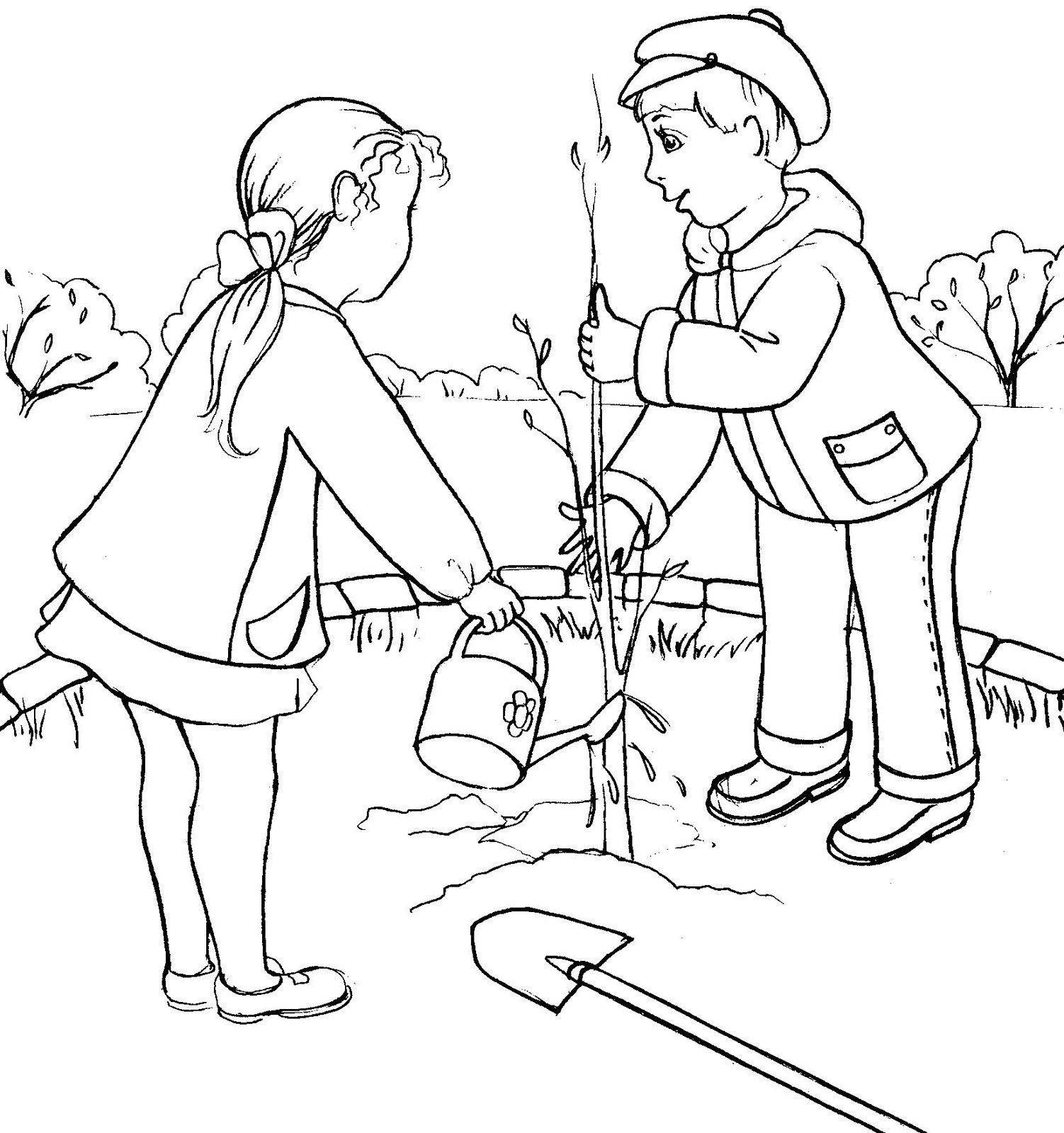 ![Раскраска сажать деревья]()