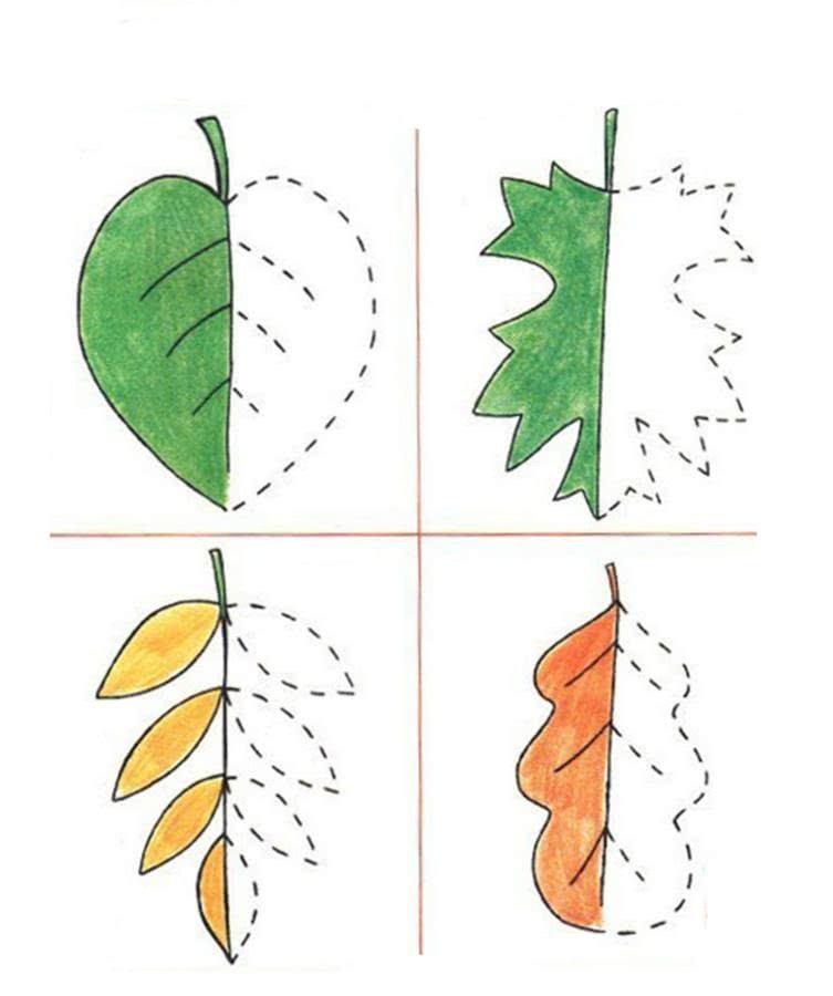 ![Дорисуй вторую половину листочка]()