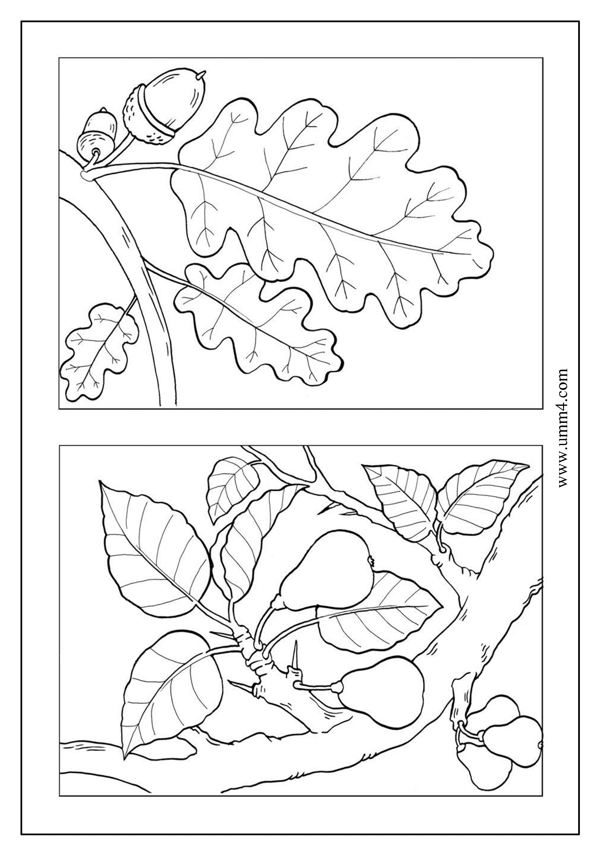 ![Листья деревьев раскраска]()