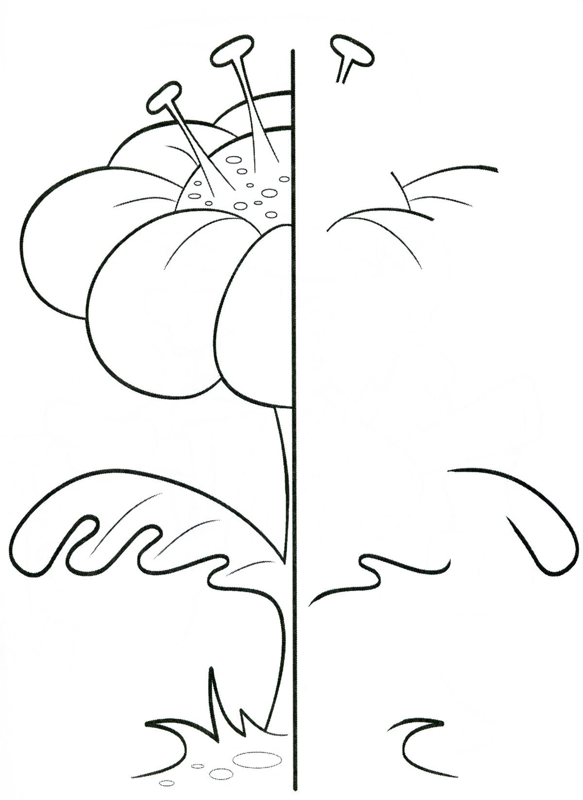 Дорисуй вторую половину листика