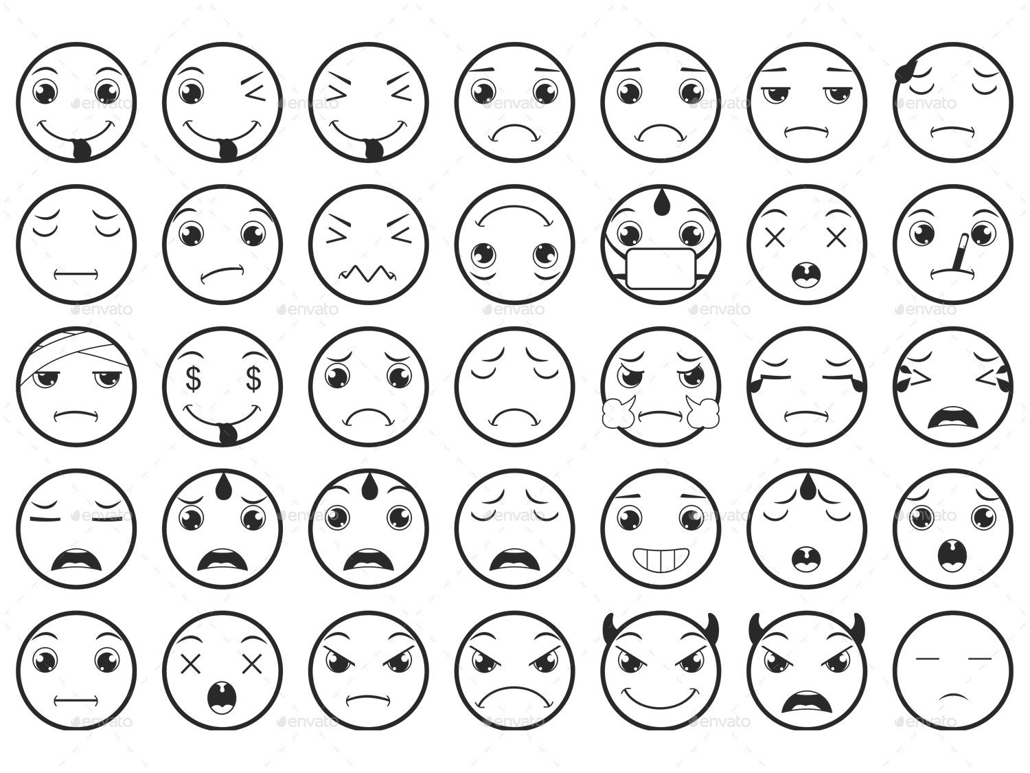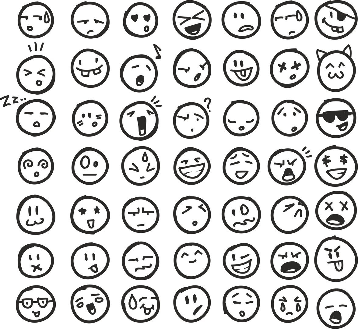 ![Стикеры смайлы черно белые]()