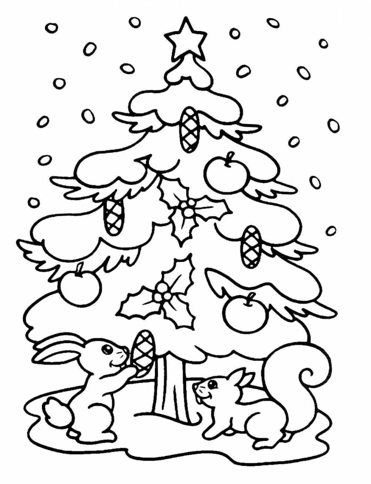 Открытка Новогодняя елка раскраска