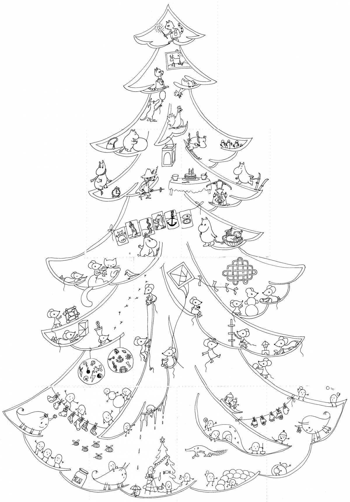 Новогодняя елка раскраска большая