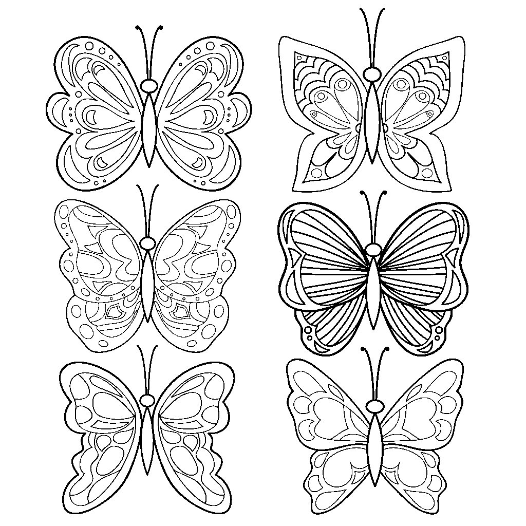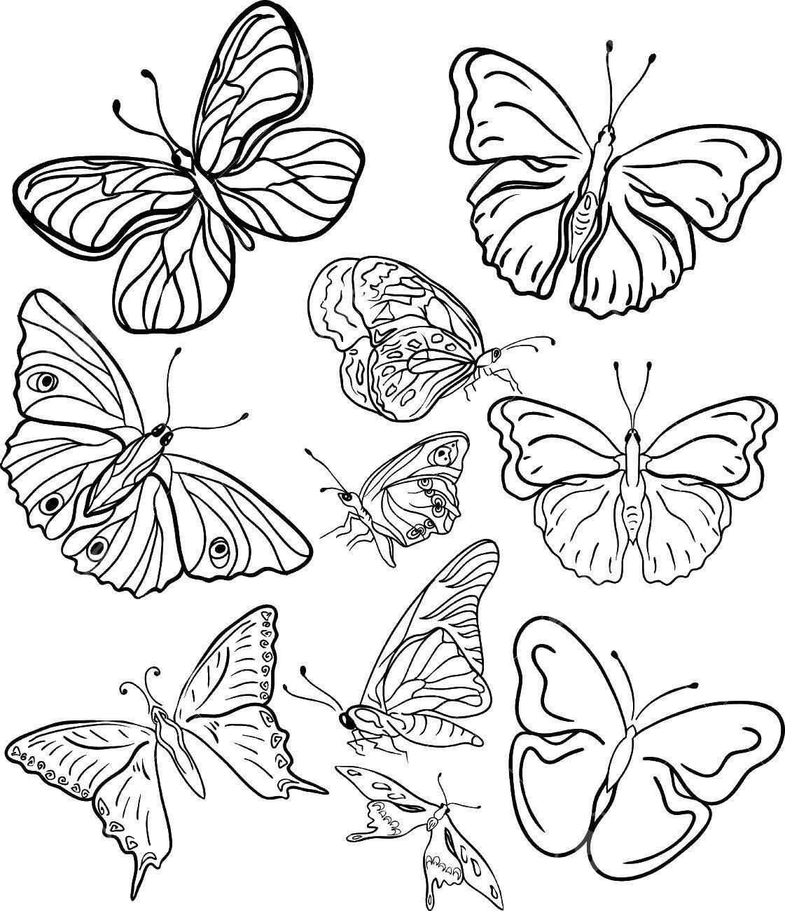Бабочки раскраска несколько