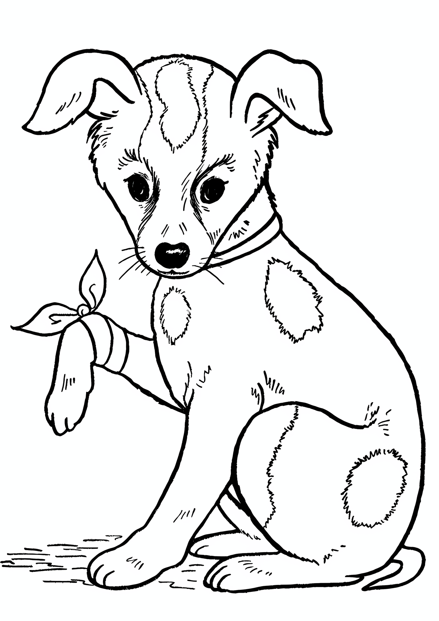 Раскраска щенок с бантиком