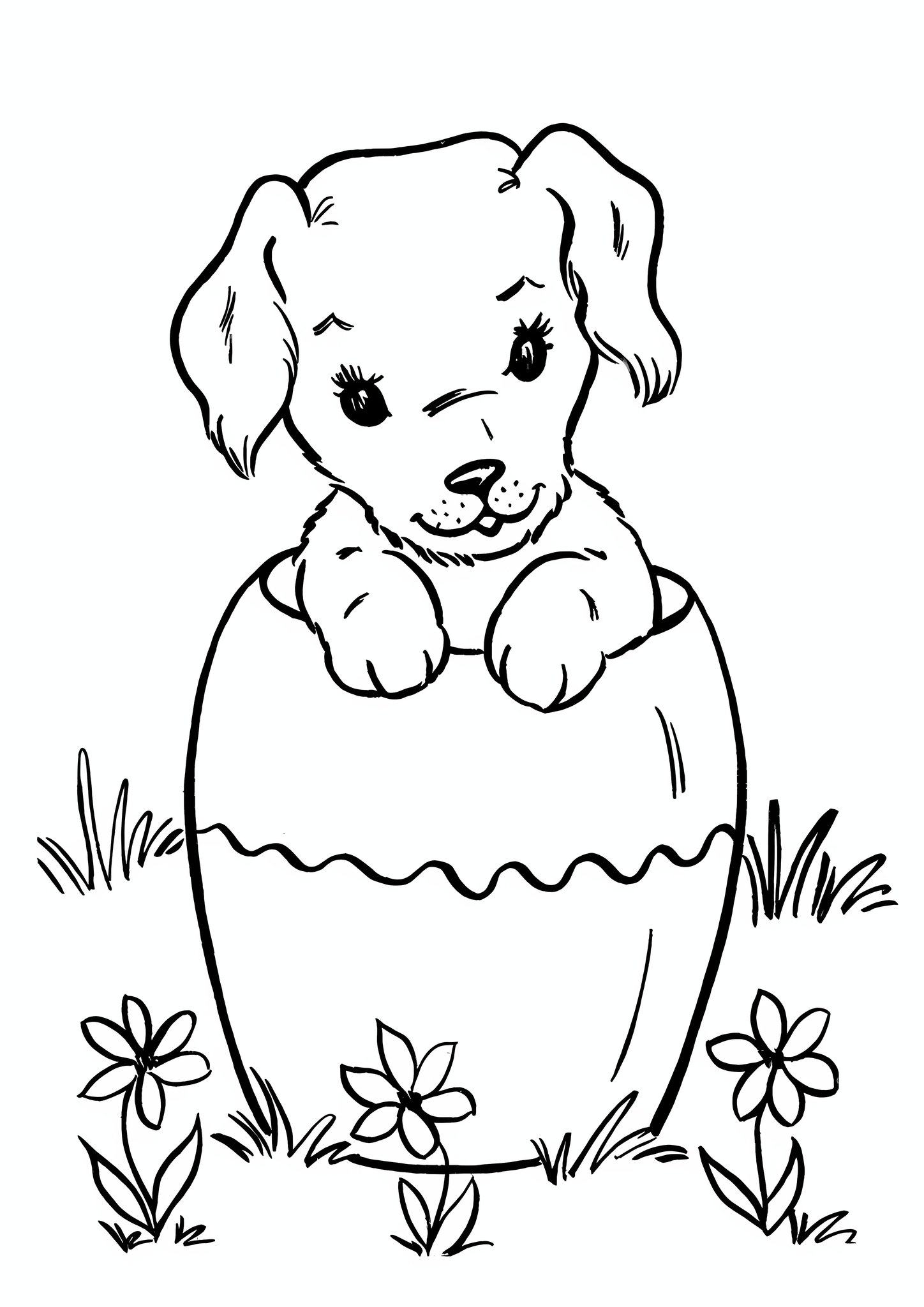 Раскраска собачка с цветком