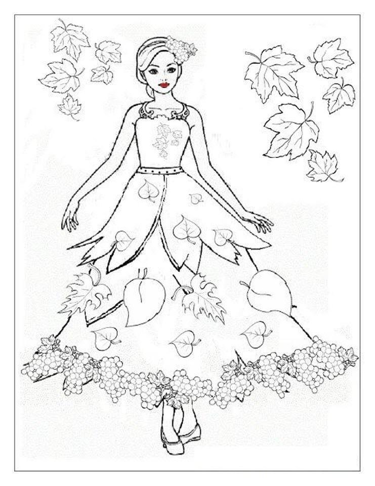 Девушка в платье раскраска